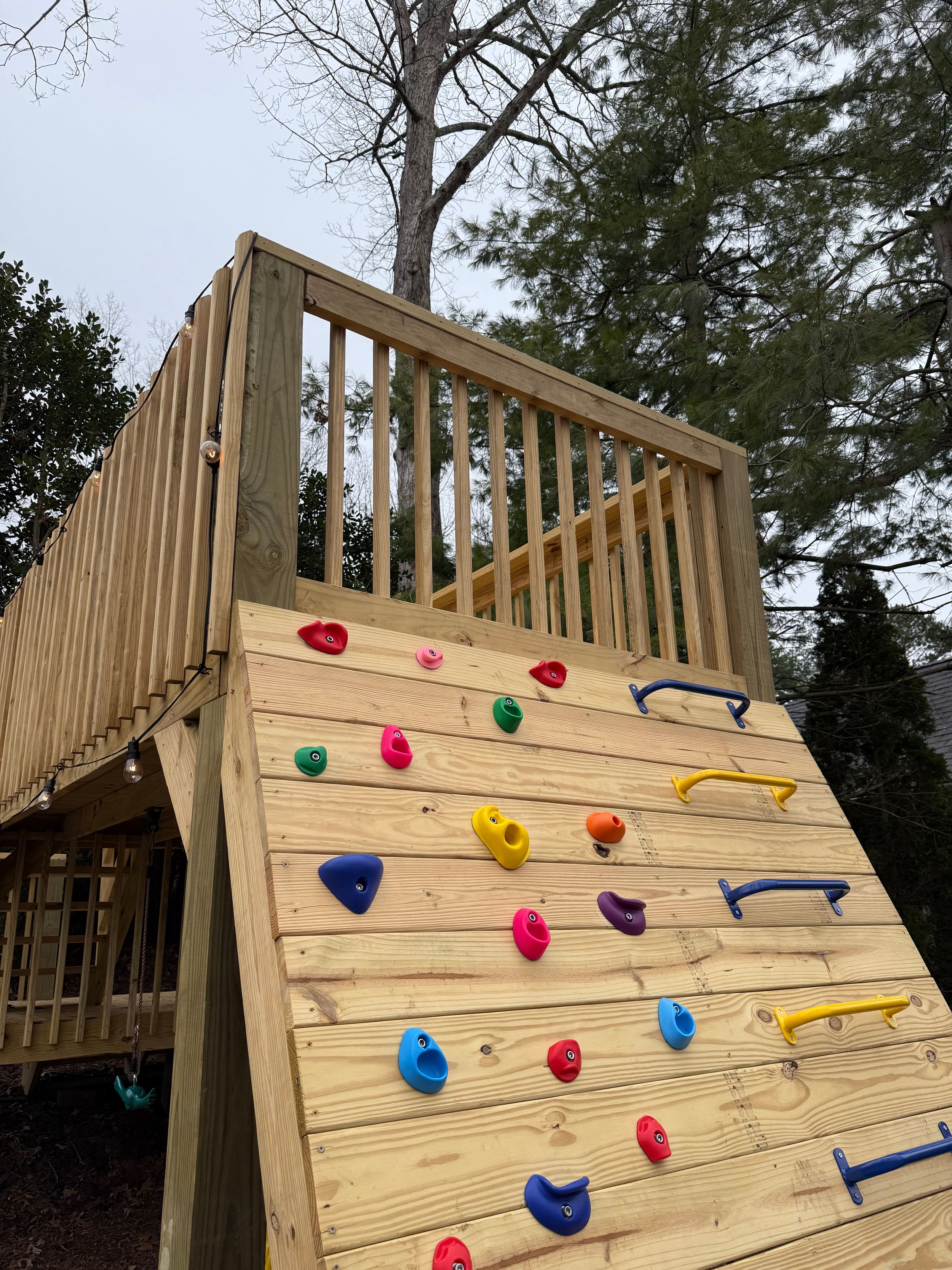 In January, I added a climbing wall to the custom outdoor play set at my parents’ house.