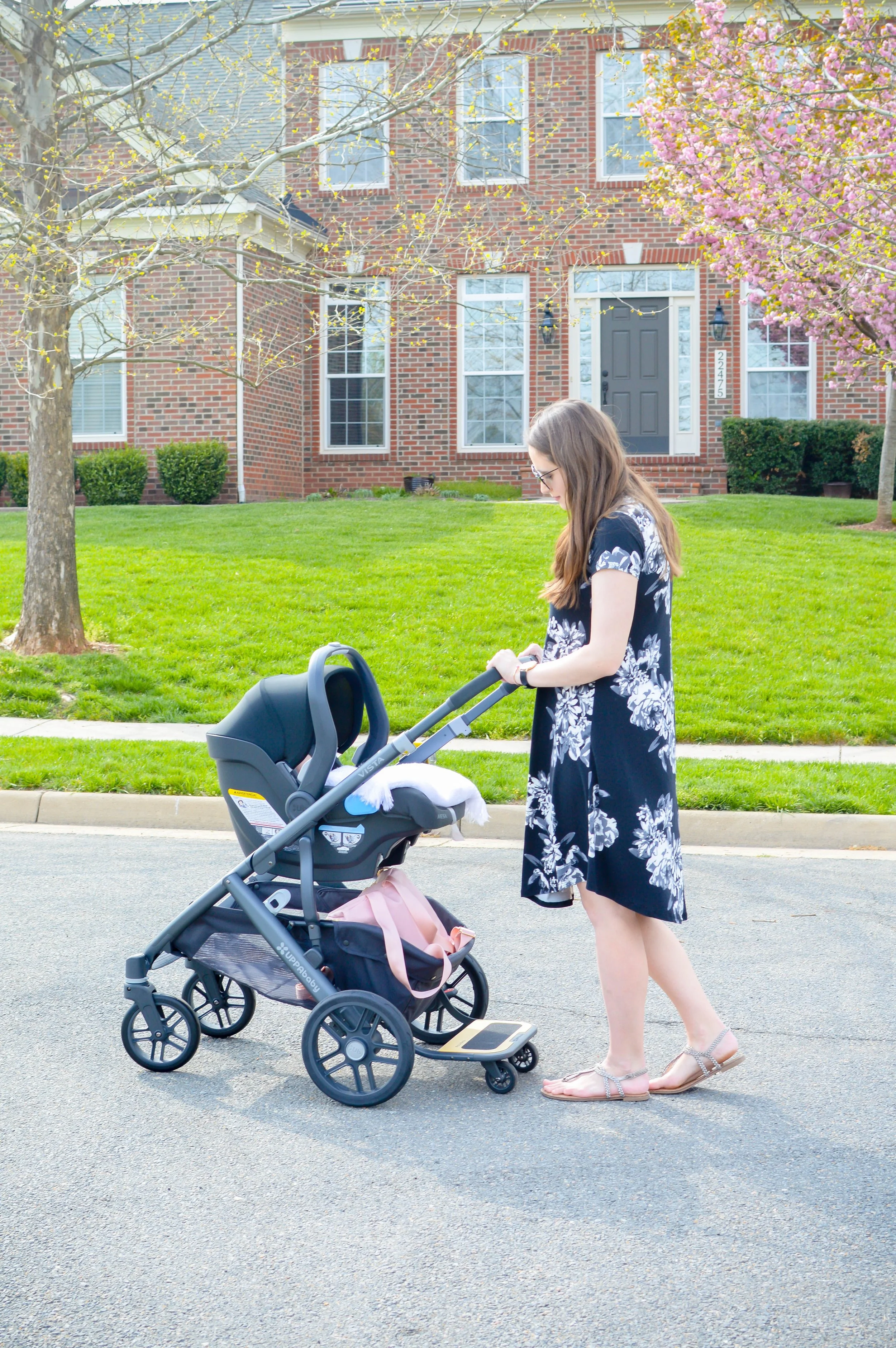 Next up is our Uppababy Vista stroller and the Mesa car seat that goes with it. I absolutely LOVE this system. It’s definitely an investment, but in my opinion SO worth it. After a TON of research, I purchased it before Jackie was born because I knew it would last a really, really long time. We love that it rides super smoothly, can fit up to 3 kids (two in seats and one on an attached ride-along board), is super sleek and spacious and is super sturdy.