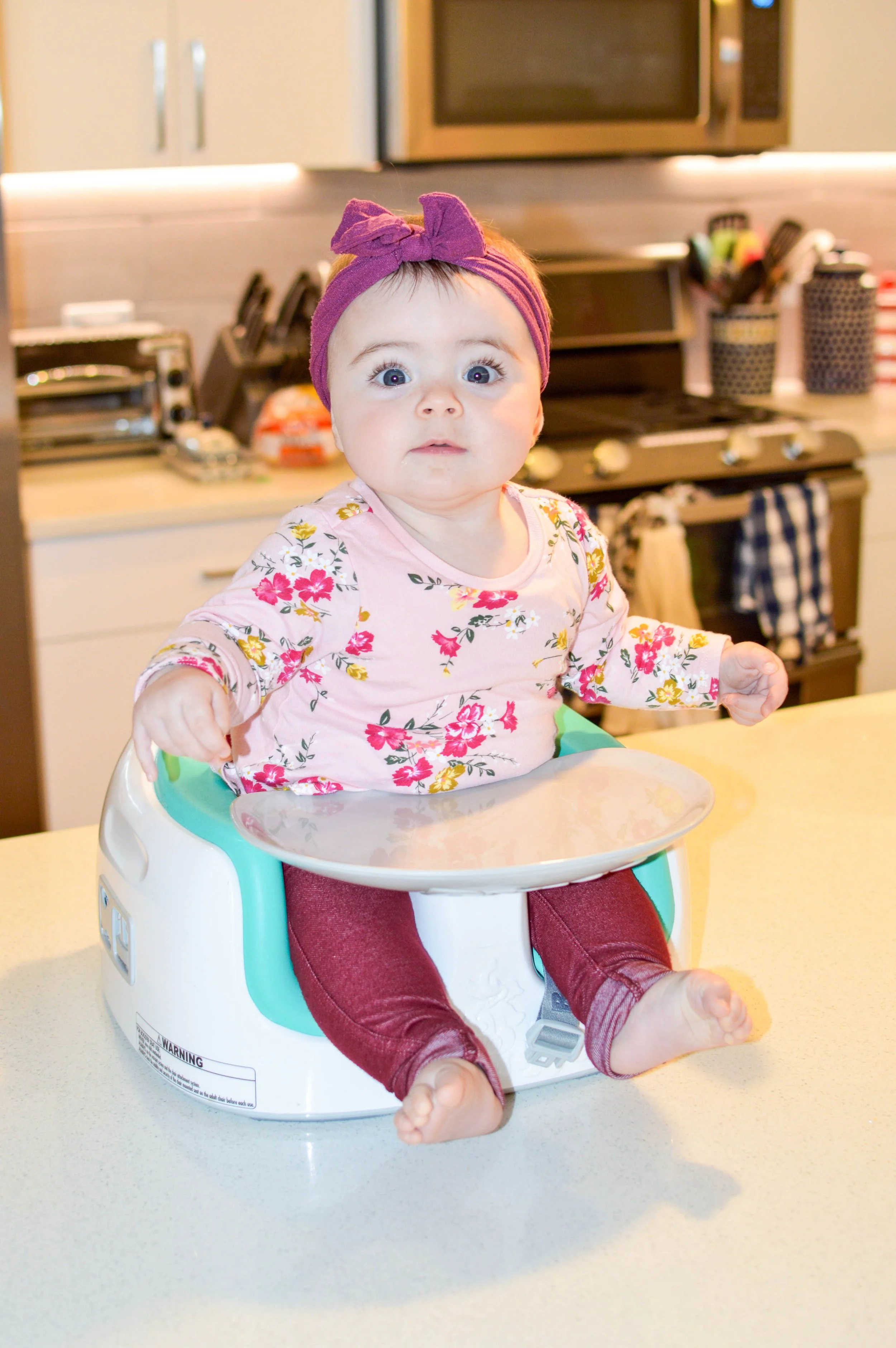 The Bumbo Multi Seat is a game changer. It is made to be used once baby can sit up on their own and transitions as the baby ages. We love that it has a belt, tray that slides in the back and a removable insert. It is super easy to clean and attaches easily to any chair. It's great for traveling or keeping at a family members house because it light weight and compact.