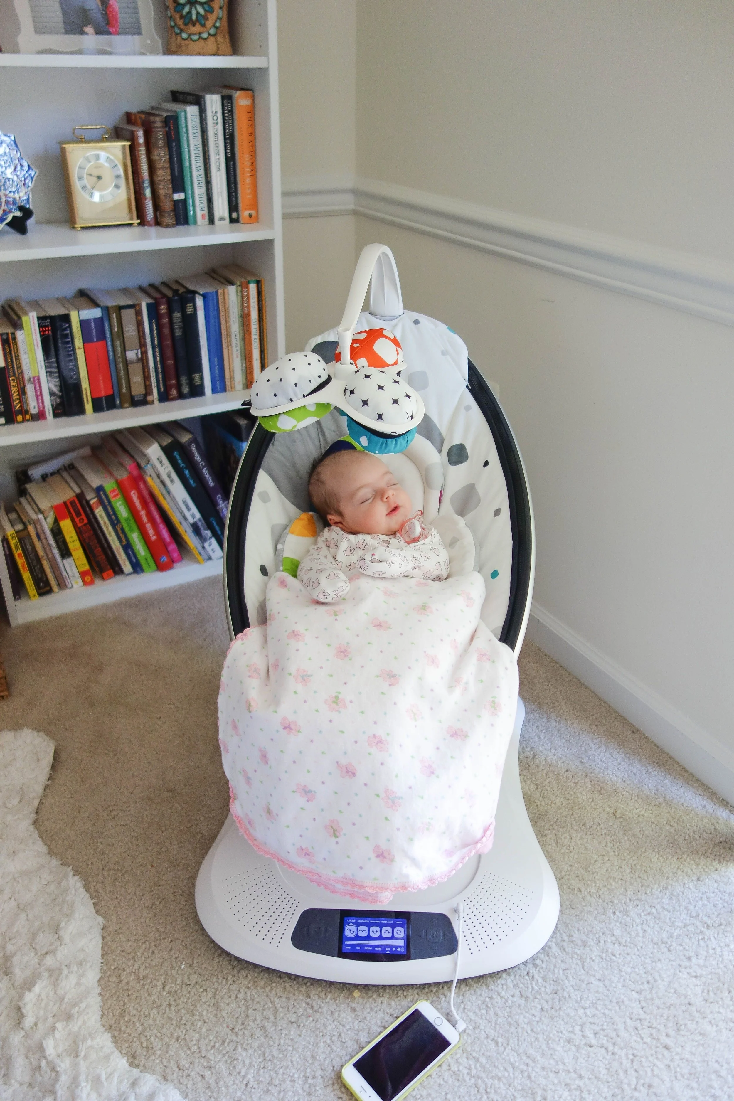 First on the list is the 4Moms Mama Roo. The Mama Roo is an alternative to a baby swing. It has a few different motions that mimic different motions to lull baby like car ride, bouncing, etc. as well as multiple sounds and speeds. They are GREAT if you need some hands free time, but aren’t recommended for safe sleep at night. Full transparency: these haven’t been recalled, but if you have certain models (which I do), consumers have been advised to get an extra strap. I’ve requested one so I can use this safely. We’re really excited to use it again because Jackie loved it!