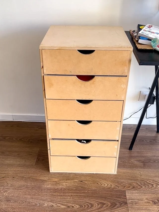 One of the first things I did when I got to Buenos Aires was go to a local hardware store and buy a set of MDF drawers. They were kind of plain and I really wanted to brighten them up a little bit. My daughter and I got some paint and paint brushes, and decided to get creative!