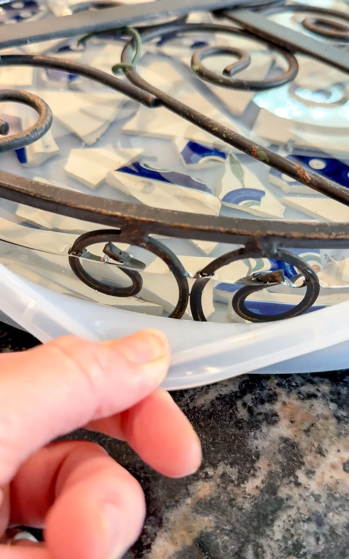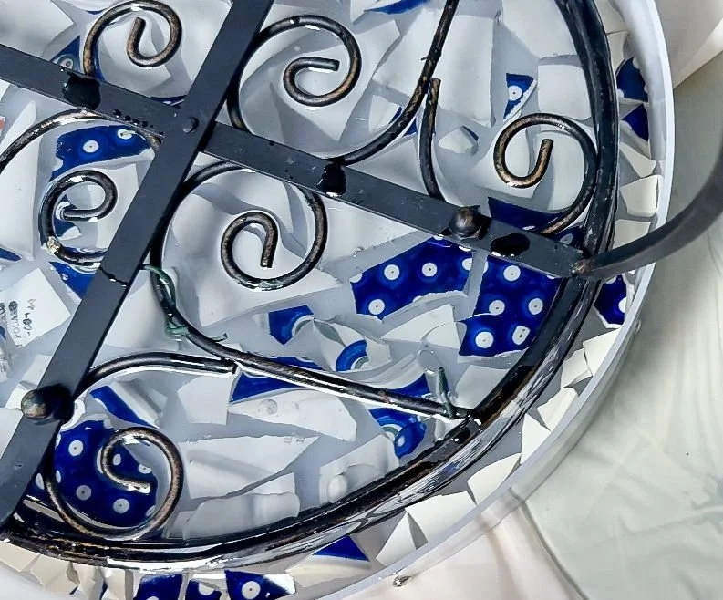 We're back at it again with another resin project, this time a table for my mom. In all honesty, this project was hard, it stretched and tested me a lot, but in the end we got it done and I'm overall happy with it. It started off with a wrought iron table my mom bought off Facebook marketplace and some polish pottery pieces she wanted to be used. I already had the supplies and had done resin and pottery pieces before, so I was confident we could make this work.