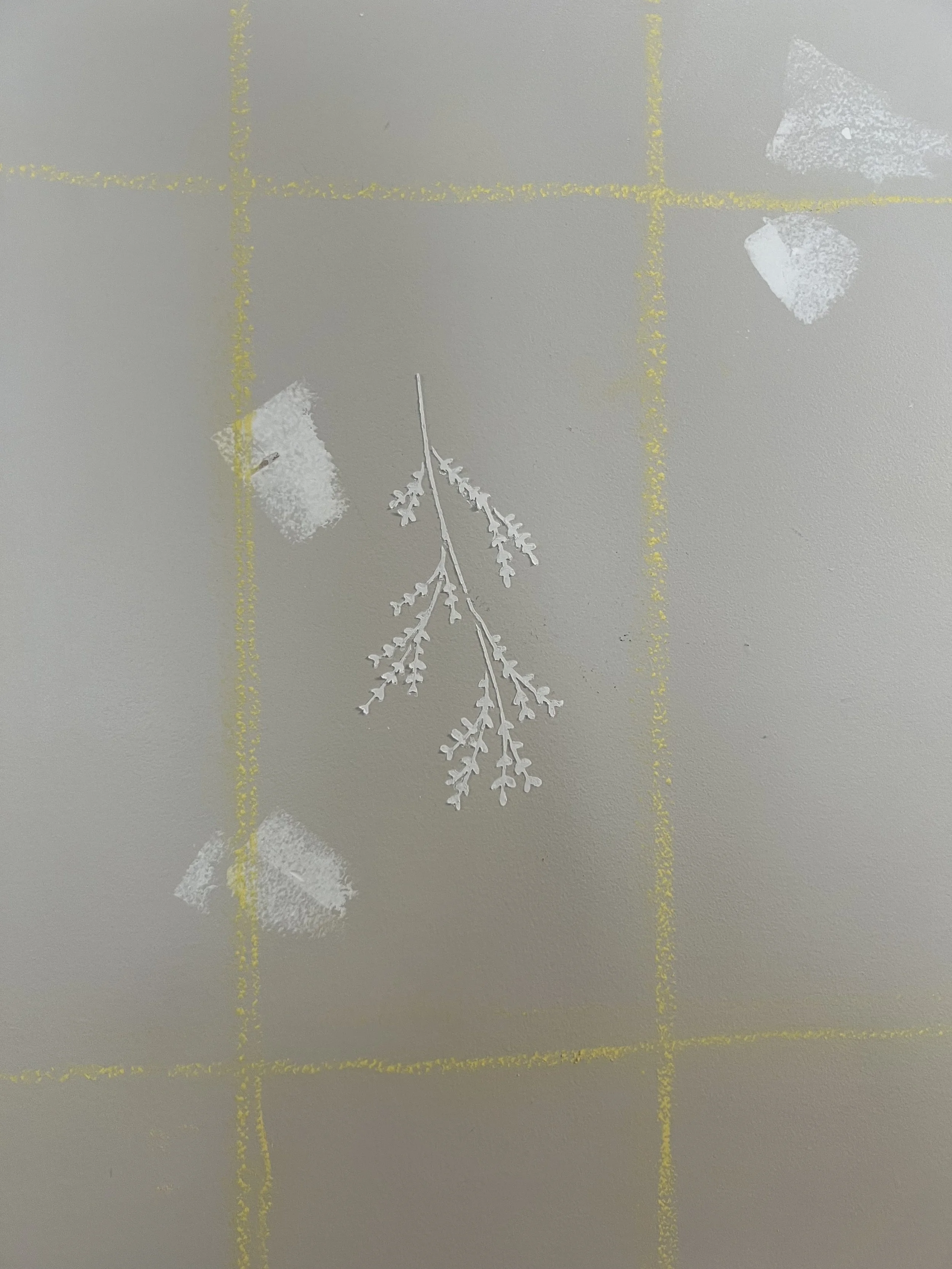 The actual stenciling was pretty simple, I just put a small amount of joint compound on the stencil, scraped it off and carefully peeled it up. You can easily clean any excess off with a baby wipe or paper towel. Once everything was dry, I lightly sanded down any rough spots on the flowers and then primed the whole wall. I was worried that the paint roller wouldn't get in between the crevices of the flowers so once the primer was done I went in with a brush and painted each flower.