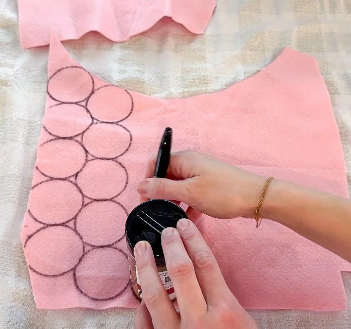 I saw someone make these felt roses and fell in love with the process. They really turn out beautifully. I used one of my spice containers to trace my circles on the felt. I used light pink, dark pink, and red. The circles are small enough that I was able to use a lot of scrap felt for the process. Once I traced all the circles, I used my fabric scissors to cut them into strips and then cut out each circle. Pro tip: make sure you cut off all of the sharpie from the circles or you will see the sharpie lines in the flower.