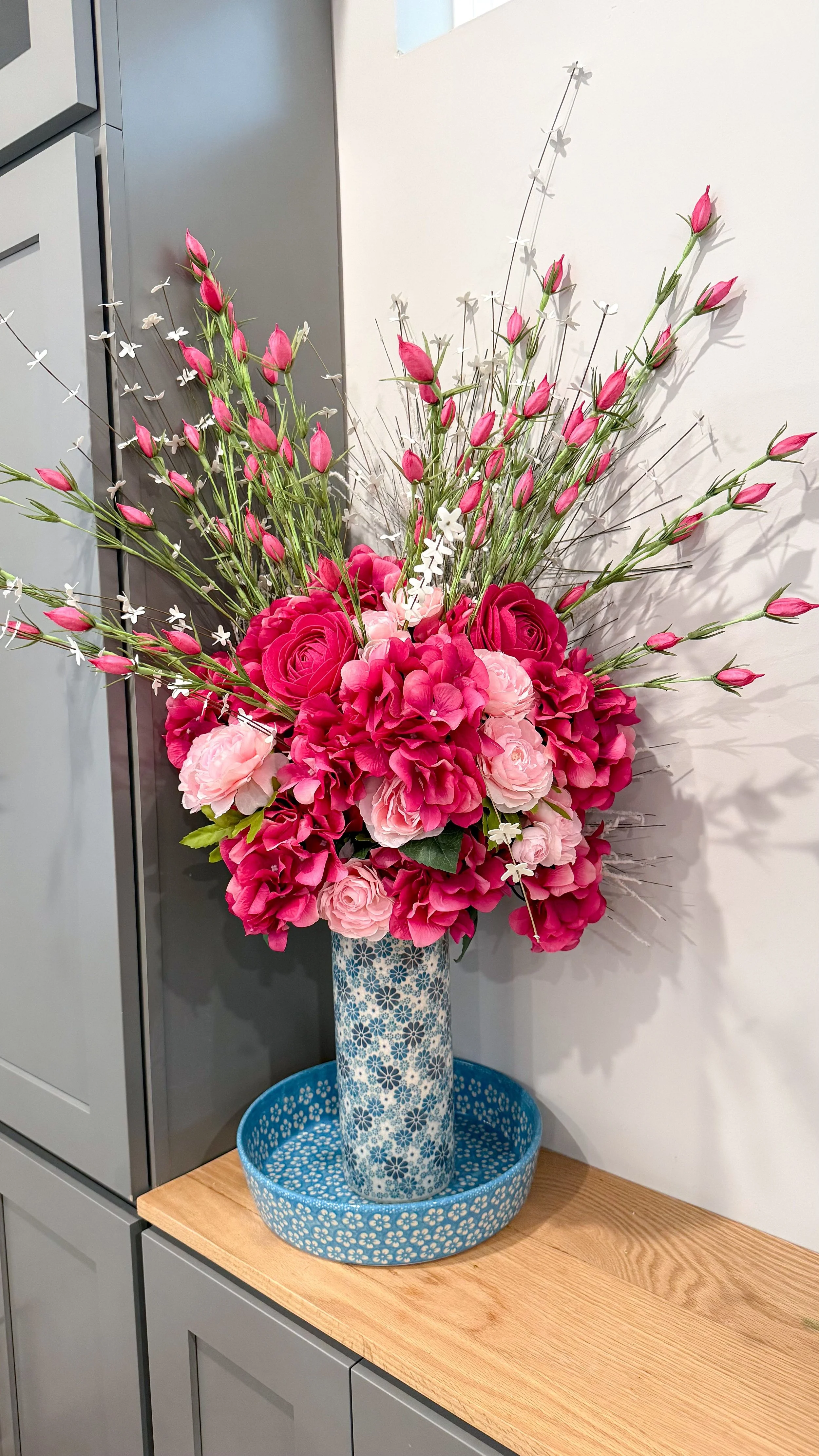 Once they were added into the floral arrangements my mom did for my house, I was stunned with how amazing they looked! Seeing how they go seamlessly into the floral arrangements makes me want to make SO many more of them in so many colors. I ended up making a bunch of red ones for my mom and some different pink ones for me.